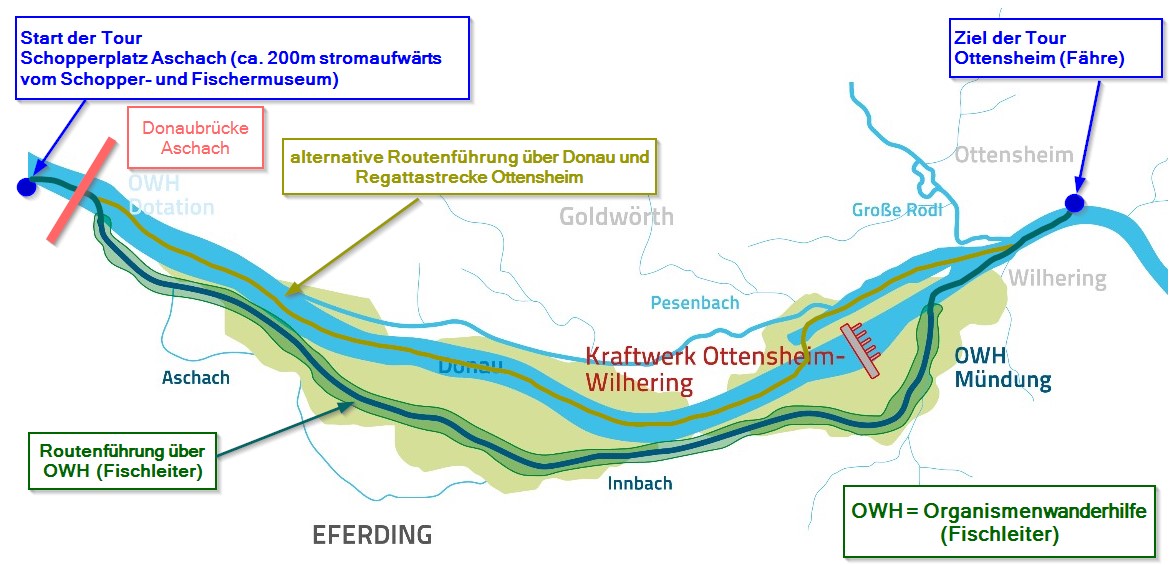 - Eintägige Paddeltour von Aschach nach Ottensheim (Abfahrt in Aschach ca. 9:30Uhr – retour in Aschach ca. 16.30Uhr)